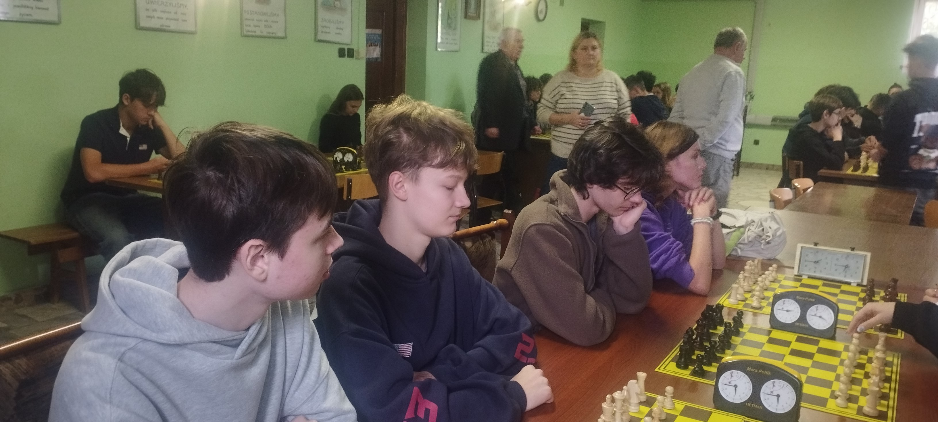 Zawody poprzedzone zostały szachowymi zmaganiami o Mistrzostwo I Liceum. I miejsce zdobył uczeń klasy 3B Paweł Czyżyk, drugie miejsce dla Mateusza Walochy, trzecie miejsce wywalczył uczeń 4B Krystian Matyjasik. Wszystkim uczestnikom turnieju gratulujemy. Organizatorem zawodów była mgr Barbara Mikulska.