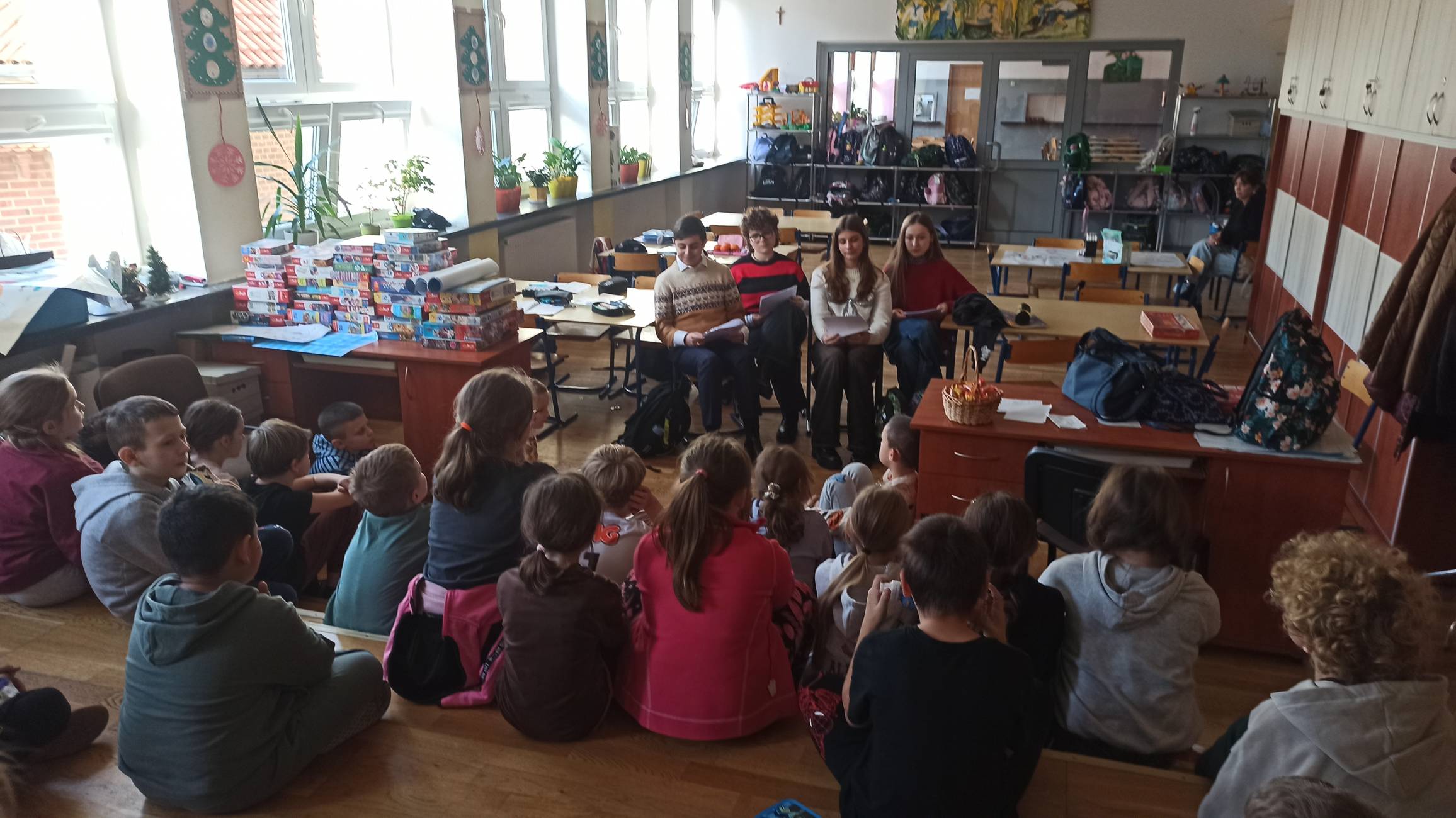 W dniu 4 grudnia 2025 roku grupa wolontariuszy bibliotecznych wybrała się do Szkoły Podstawowej nr 3 w Tarnowie, aby poczytać dzieciom wiersze.